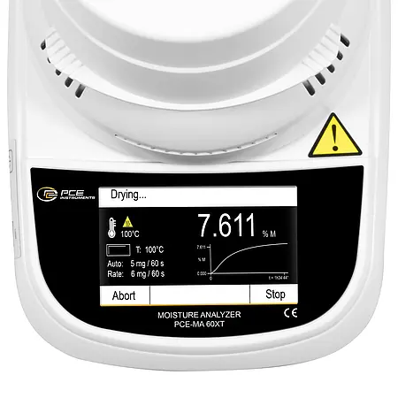 Peso da amostra para secagem | Mín. 2 g / Máx. 60 g |