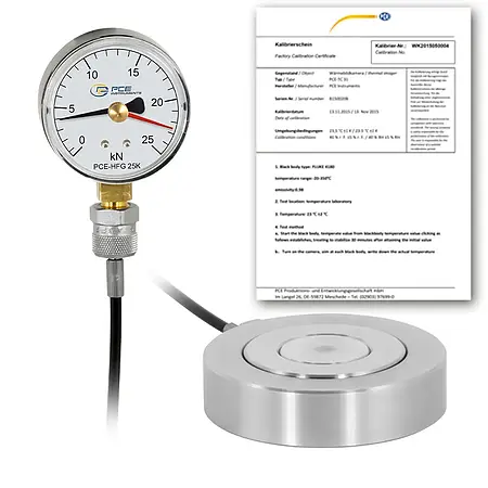 Célula de carga hidráulica PCE-HFG 25K-E100-ICA incl. certificado de calibração ISO