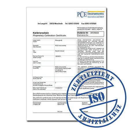 Um certificado de calibração ISO certifica os resultados de medição obtidos durante uma calibração realizada em condições específicas. Esse certificado é geralmente necessário para o cumprimento dos requisitos de qualidade definidos pela série de normas DIN ISO 9000. Esses requisitos de qualidade também especificam o intervalo de tempo após o qual uma nova calibração dos diferentes instrumentos de medição deve ser realizada.