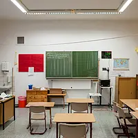 O controlador ambiental também possui um gráfico de barras que permite ver a concentração de CO2 de forma gráfica. Além disso, o controlador ambiental tem uma divisão nas cores verde, amarela e vermelha. Esses símbolos acendem de acordo com a concentração de CO2 no ambiente. Graças a isso, é possível avaliar melhor o dióxido de carbono no ambiente, o que permitirá tomar as medidas cabíveis para ventilar, se necessário. O controlador ambiental possui um alarme acústico que se ativa quando a concentração de dióxido de carbono ultrapassa o valor limite. Na fábrica, ajustamos o valor limite do CO2 para 1200 ppm.