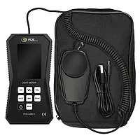 O controlador ambiental para a medição da intensidade luminosa tem uma ampla faixa de medição de 0 … 400.000 lux. O controlador ambiental usa um fotodiodo de silício com filtro espectral como sensor. Graças a isso, o usuário pode posicionar sempre o sensor do controlador ambiental de forma correta. Os valores de medição do controlador ambiental são exibidos em unidades Lux e Footcandle. Além de exibi-los de forma numérica também possui um gráfico de barras.