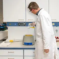 O balão de destilação é um recipiente com capacidade de 1000 ml no qual poderá introduzir líquidos. A faixa de temperatura é de 0 a 450ºC que pode ser regulada continuamente através de um interruptor giratório. Graças ao seu aquecimento rápido, o usuário economiza tempo. Se você precisar de uma manta de aquecimento com uma capacidade volumétrica diferente ou outra faixa de temperatura, por favor, consulte nossa seção de mantas de aquecimento.