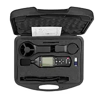 O medidor climatológico é um dispositivo que unifica 5 dispositivos em 1. Este medidor climatologico 5 em 1 mede, segundo o sensor e o parâmetro selecionado, a intensidade luminosa, o nível sonoro, a temperatura e umidade do ar e a velocidade do vento. O medidor climatológico é ideal para realizar medições estimativas, como por exemplo, em escolas. O medidor climatológico também é útil na prevenção de acidentes de trabalho. Permite por exemplo, conhecer a intensidade luminosa de um posto de trabalho, como pode ser um escritório. Também pode determinar o ruído que causa uma máquina ou uma instalação. Através do medidor climatológico do medidor climatológico poderá determinar a velocidade do ar em sistemas de ventilação e climatização.